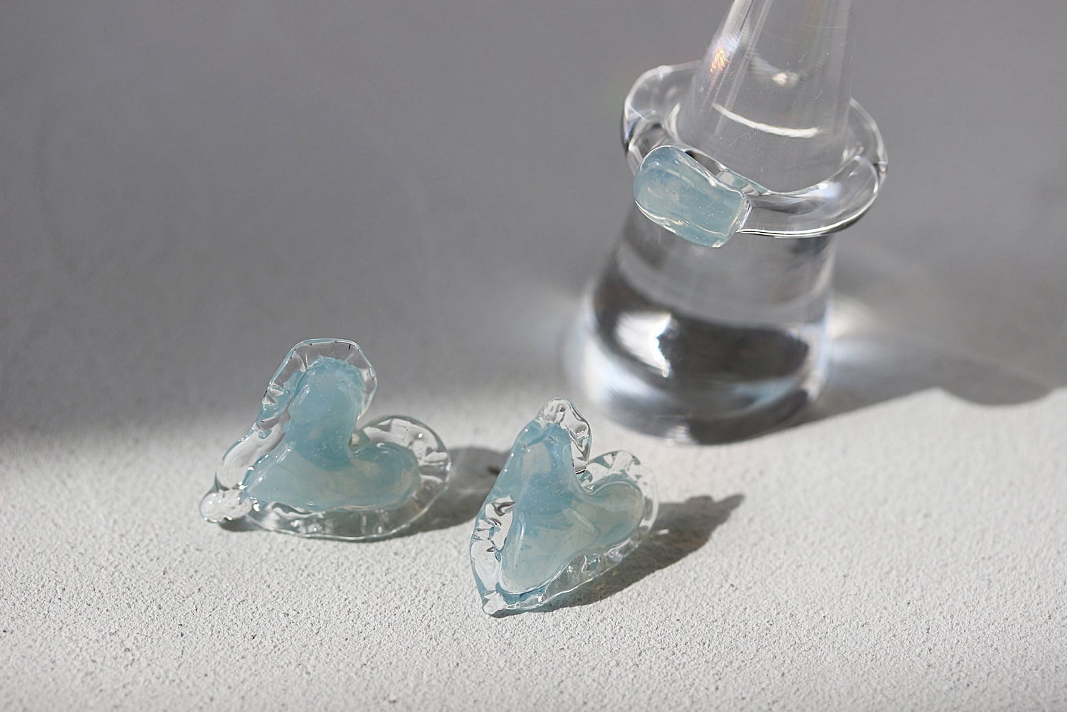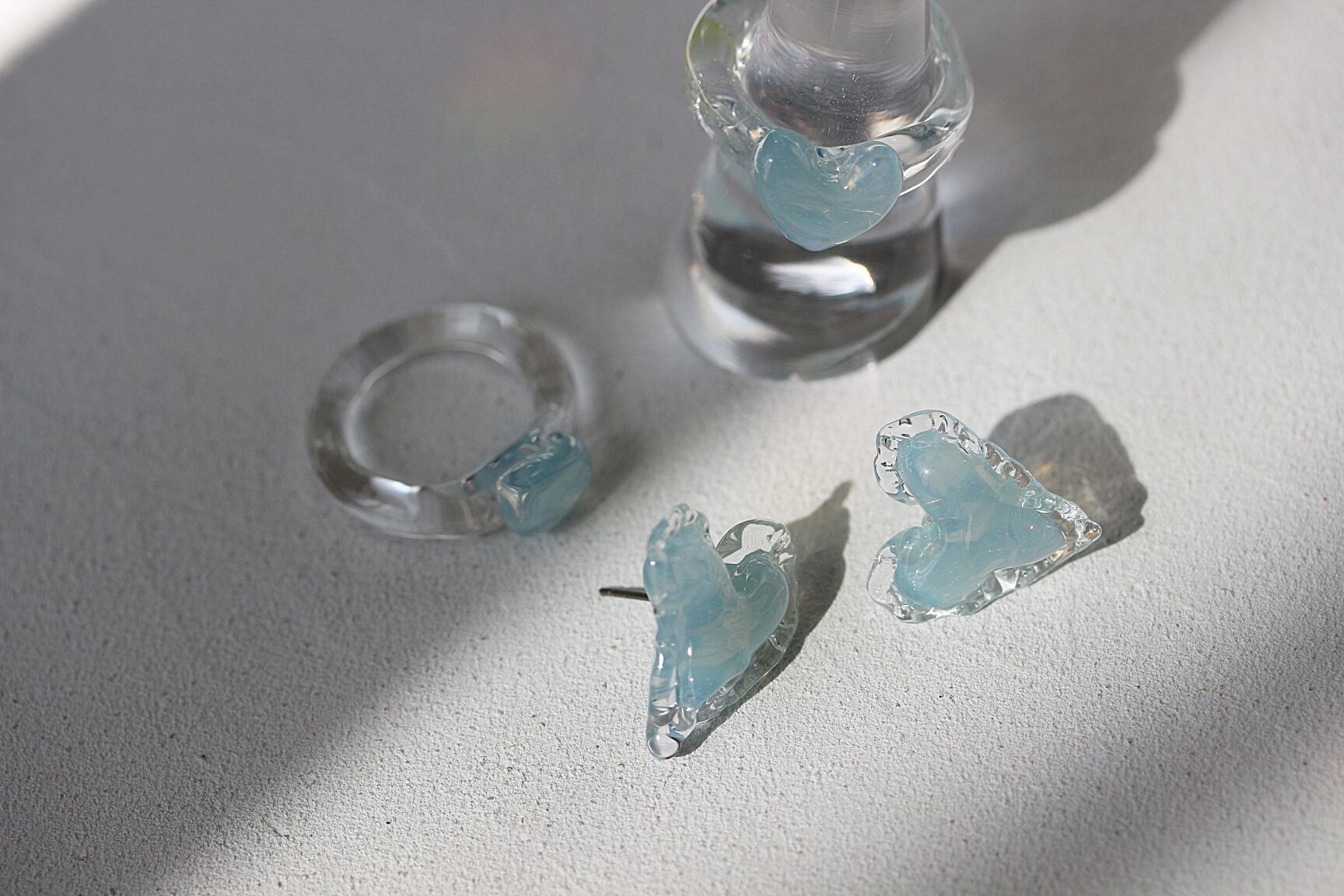 ガラスリング×ピアス・イヤリングのセットです